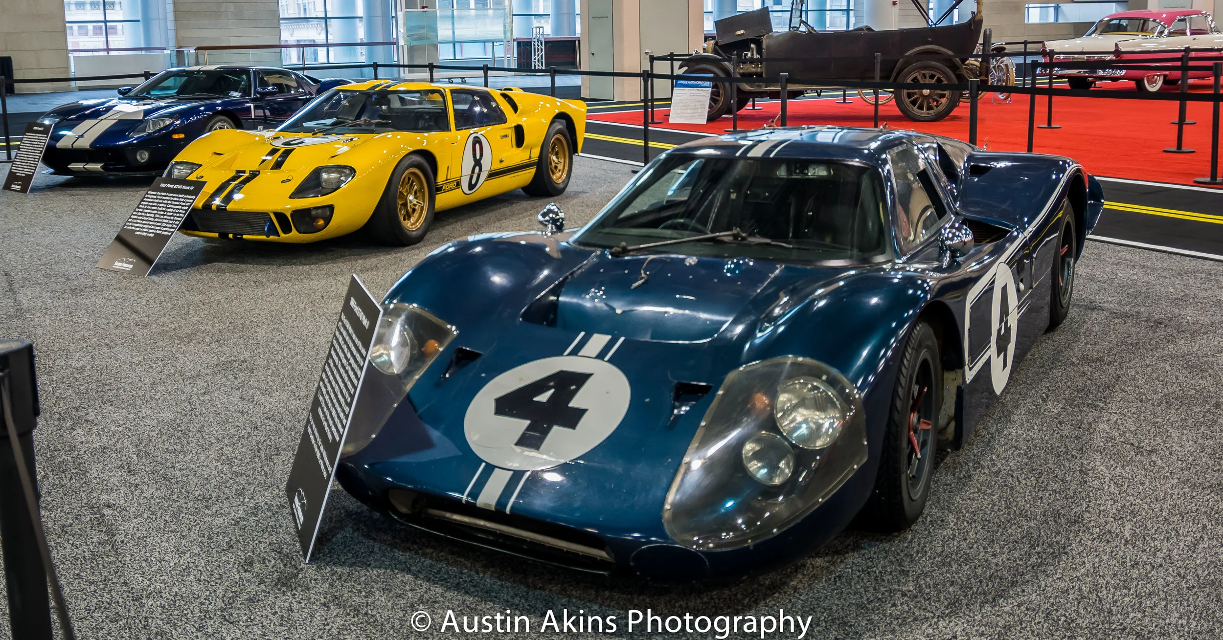 Aside from all this I finally made it to what I was dying to see at the show. The Simeone Foundation Museum, located in south Philly, brought some amazing American Racing history. Standing before me was the 1965 Cobra Daytona Coupe, Ford GT 40 Mark II, and the Ford GT Mark IV. Even though I have seen these cars at the museum, to have them all together in one place along with the 2005 Ford GT was amazing to see. So much of American and Ford racing history sitting in one spot. The 1965 Cobra Daytona Coupe is 1 of 6 cars Shelby built to compete in the World Sportcar Championship and the only one out of the 6 completely built on American soil. This car has never been restored, and is left in the way it looked over 50 years ago when it last raced. It has also became the first car to make the National Historic Vehicle Registry. The other two Ford GTs, even though they are not the ones that won Le Mans, they still raced there, and have plenty of racing history to make them amazing cars to see.